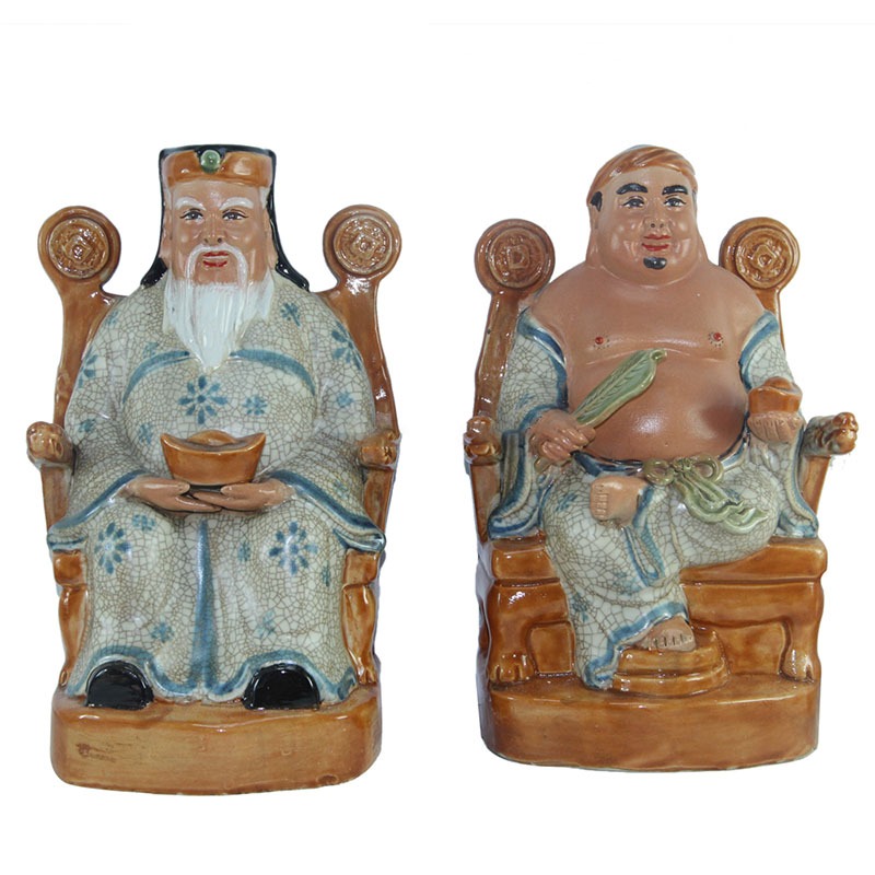 Trên bàn thờ tượng ông địa thường được đặt ở bên phải, tượng Thần tài bên trái.